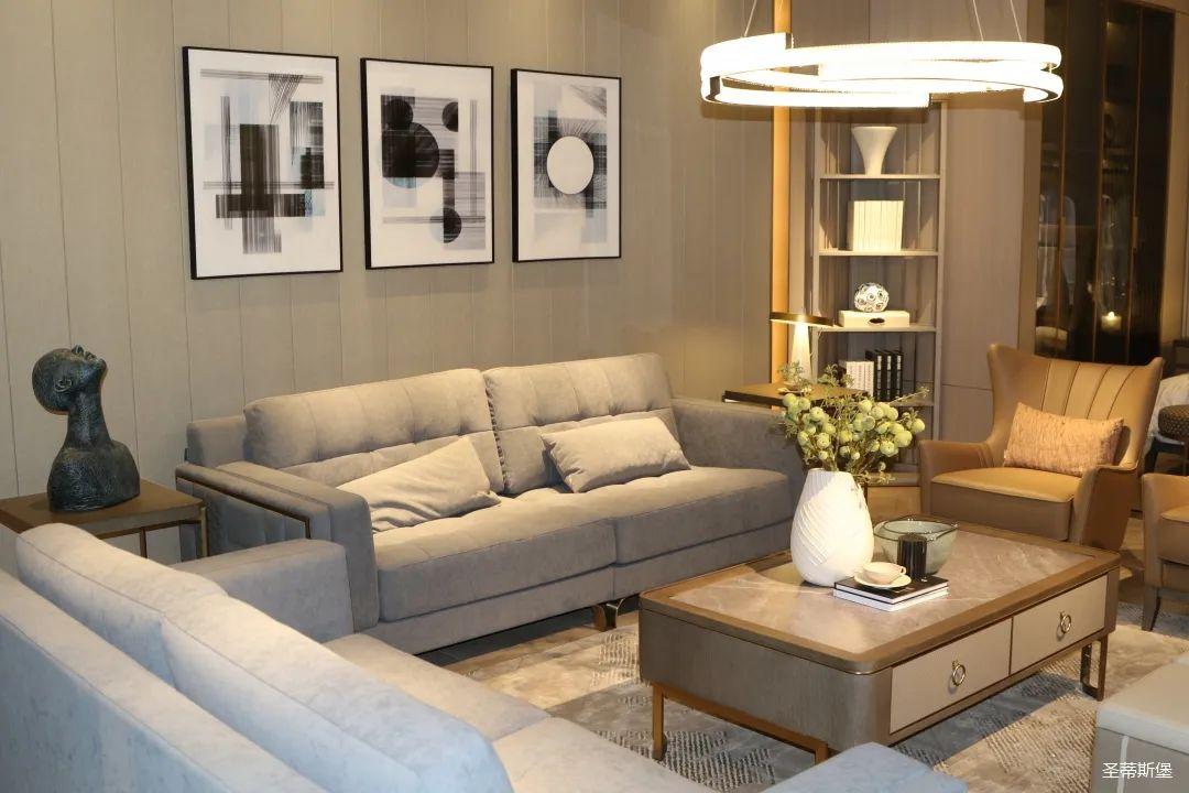 【圣蒂斯堡·洛斯】系列融入了当下流行时尚的轻奢元素,以金属镶嵌、实木硬包、科技木皮饰面等设计手法,是一种与众不同的时尚简奢家具。它没有太多复杂的设计,没有夸张的造型,没有太多喧闹的色彩,将轻奢的元素适度的融入到简约的风格中,在增添几分精致和高贵,而又不会流于世俗。色彩上表达了时尚与格调结合的审美,使人在心理和感官上获得更加舒适亲切的温馨感受。