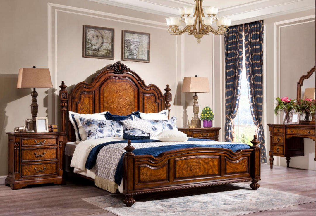 运用实木的制作工艺来体现美式的文化,整个面板采用实木单板镶嵌工艺,以树瘤特殊的木纹进行拼接,加上精致的涂装工艺,给人一种古典、奢华的感觉。